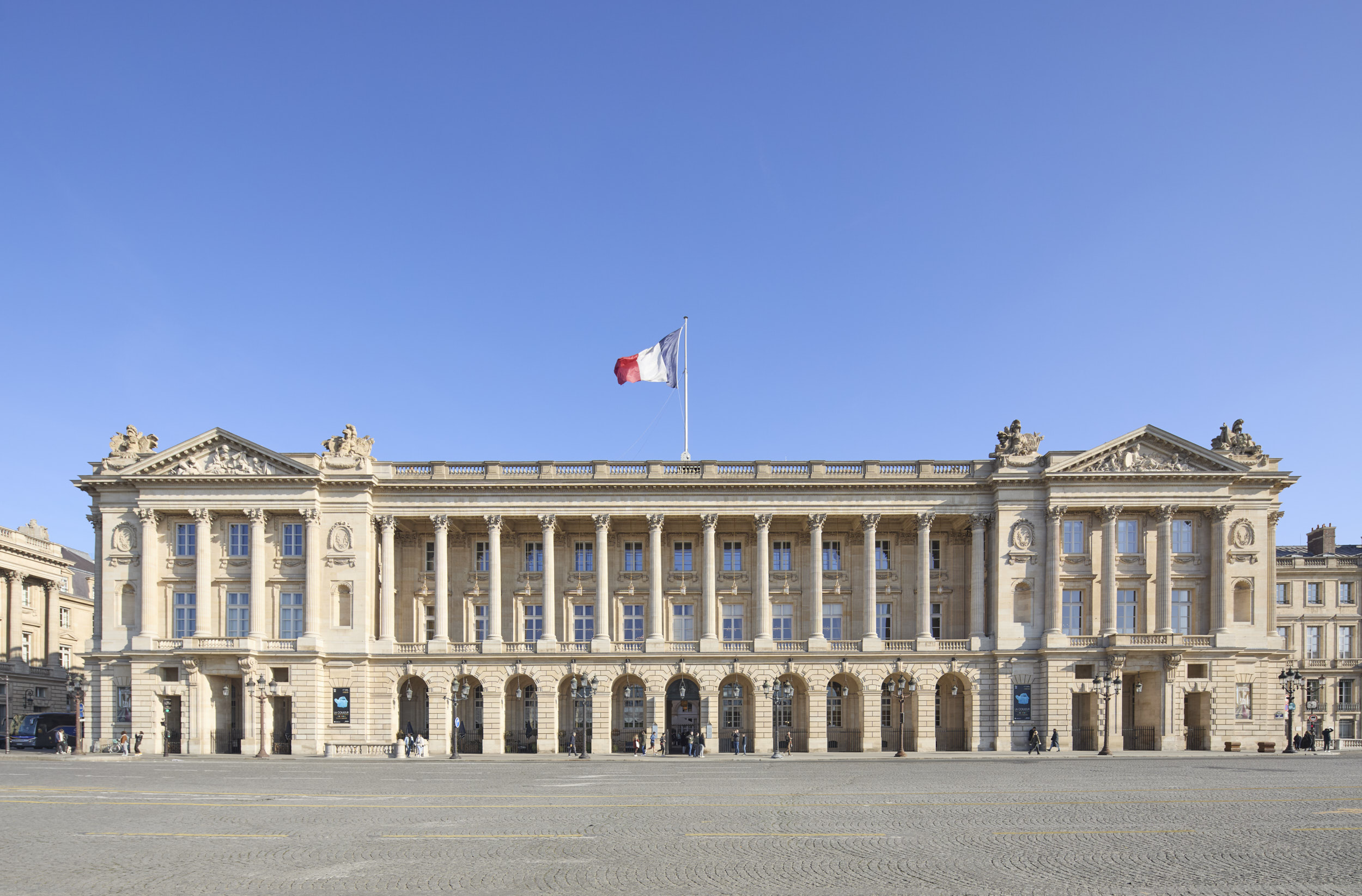 Construit en miroir d’un édifice situé de l’autre côté de la place de la Concorde entre 1758 et 1772, d’après les plans d’Ange-Jacques Gabriel, premier architecte du Roi, l’hôtel devient en 1774 le Garde-Meuble royal.