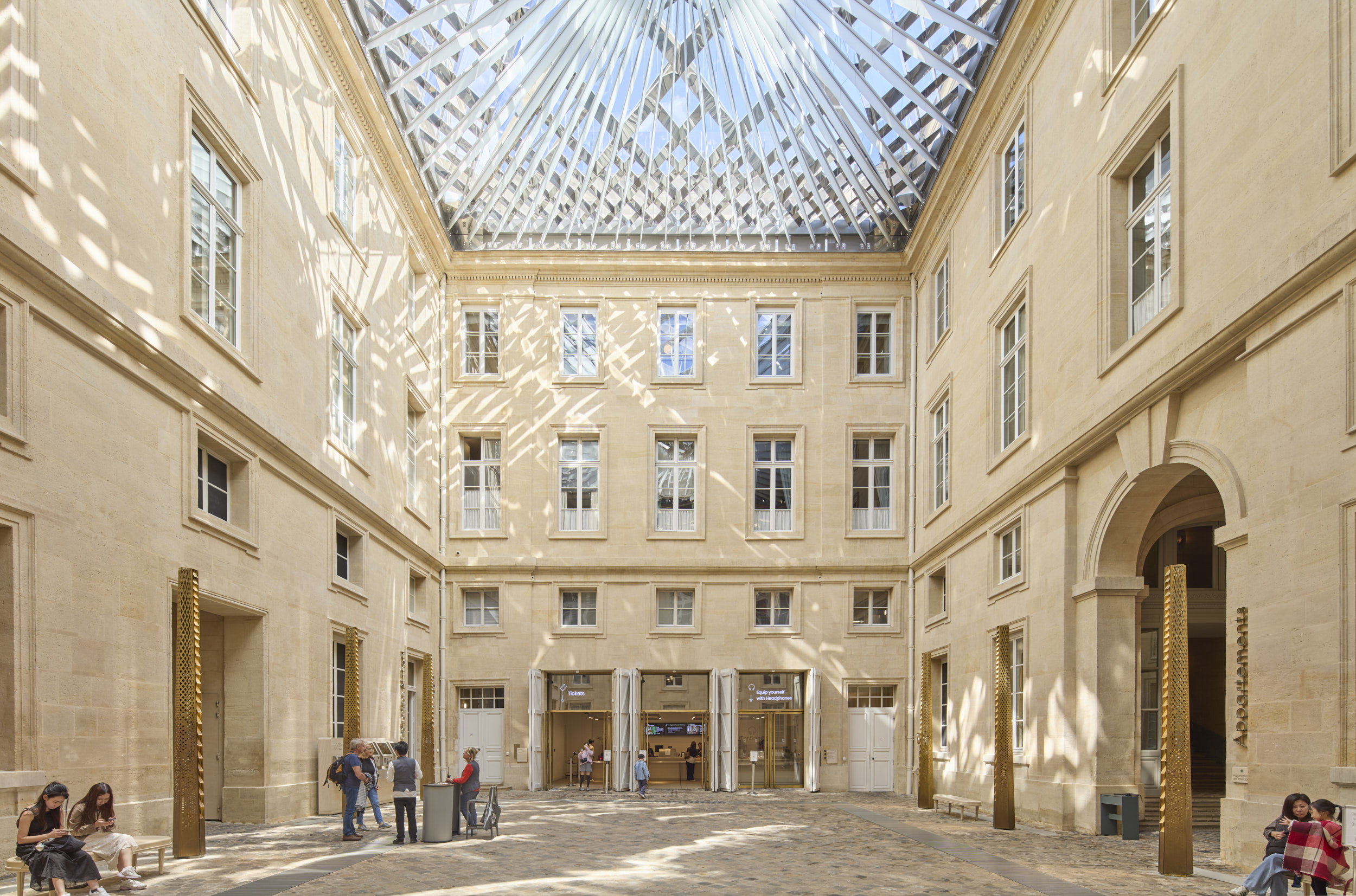 Menée en trois chantiers successifs, la reconversion de l’Hôtel de la Marine a consisté en une opération de restauration du clos et du couvert, une phase de curage, puis une opération de restauration-reconversion, de mise aux normes et d’accessibilité aux personnes à mobilité réduite. L’installation d’une verrière, imaginée par l’architecte Hugh Dutton, dans la cour de l’intendant, a accompagné cette restructuration. Son aspect sculptural s’inscrit dans la continuité des savoir-faire et des valeurs de l’œuvre architecturale d’Ange-Jacques Gabriel.