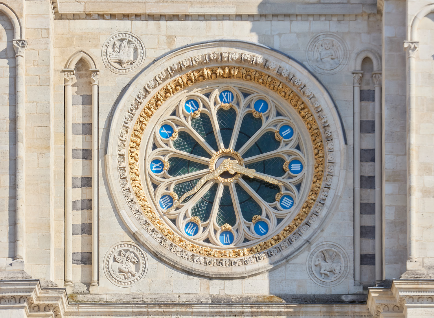 Les interventions ont également porté sur des ouvrages de second œuvre, essentiels à la bonne présentation de la façade, tels que les vitraux, les menuiseries et l’horloge, restituée en son centre.