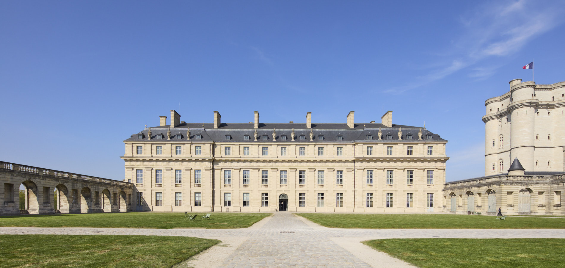 Le château conserve aujourd’hui de son architecture féodale un donjon d’une hauteur de 52 mètres, achevé sous le règne de Charles V (1338-1380), et une enceinte monumentale, longue de plus d’un kilomètre, ponctuée de neuf tours et complétée par une Sainte-Chapelle fondée en 1379. C’est à Louis VII (1120-1180) que l’on doit, à la fin du XIIe siècle, l’emplacement choisi à l’est de Paris pour ériger un pavillon de chasse, transformé un siècle plus tard, sous le règne de Louis IX (1214-1270), dit Saint Louis, en haut lieu du pouvoir royal.